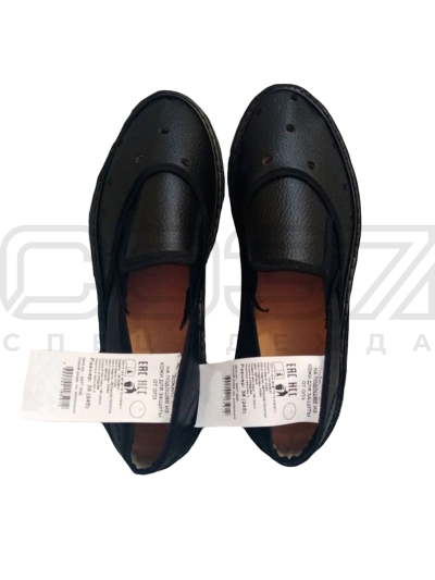 Тапочки нат.кожа с перфорацией и резинками подошва пористая резина цв.чёрный в Красноярске