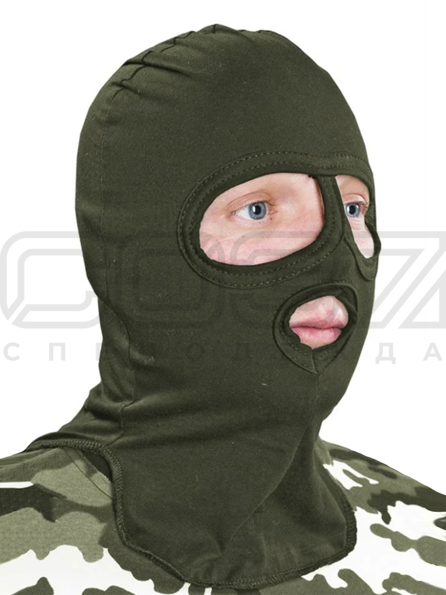 Маска трикотажная "СОБР" цв.олива тк.кулирка в Красноярске