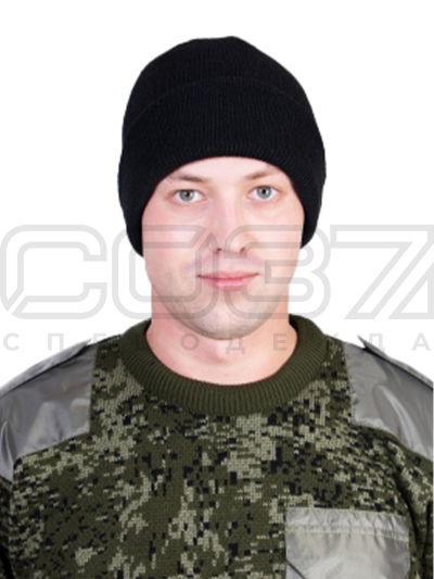 Шапка трикотажная "Сибирь" двухслойная с отворотом цв.чёрный в Красноярске