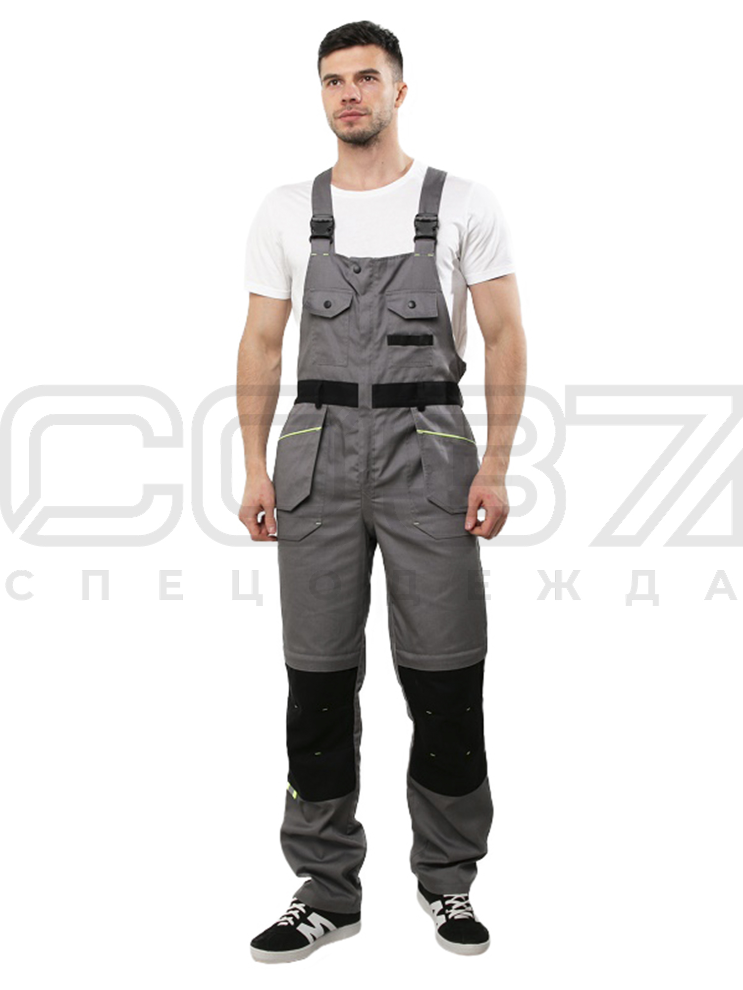 Полукомбинезон рабочий "Экстра" цв.серый/чёрный/лимон тк.смесовая в Красноярске