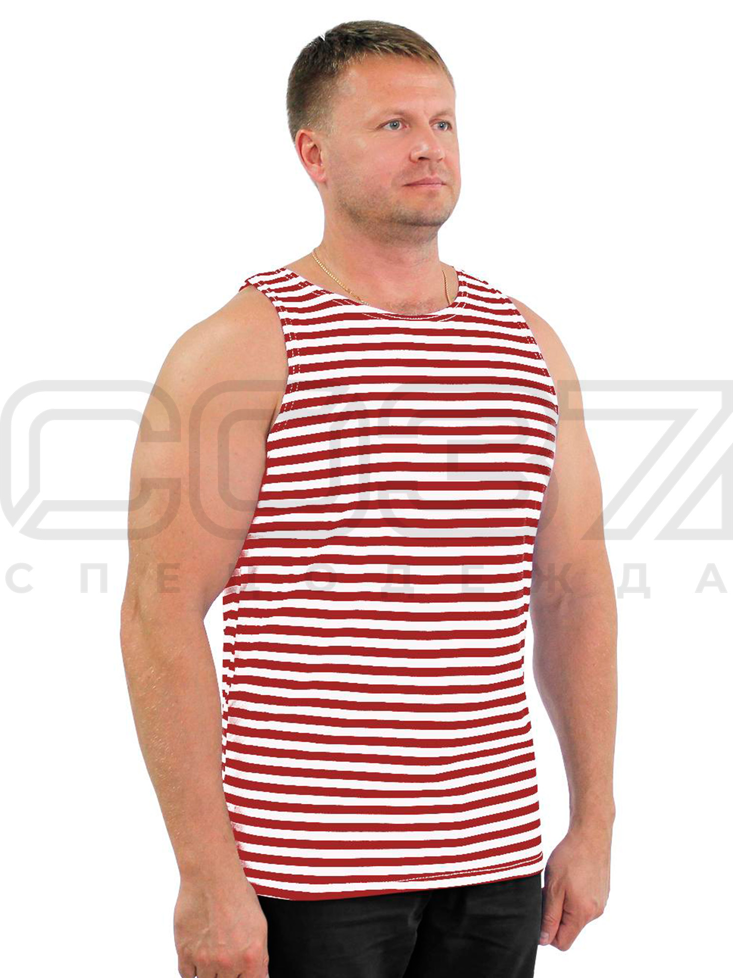 Майка-тельняшка с узким плечом, красная полоса.