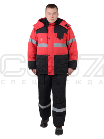 Костюм рабочий зимний "Авангард" с СОП цв.красный/чёрный тк.таслан (куртка+пк) IV и Особый кл.пояс в Красноярске
