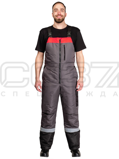 Полукомбинезон рабочий зимний "Азимут" с СОП цв.серый/красн/черн тк.таслан в Красноярске