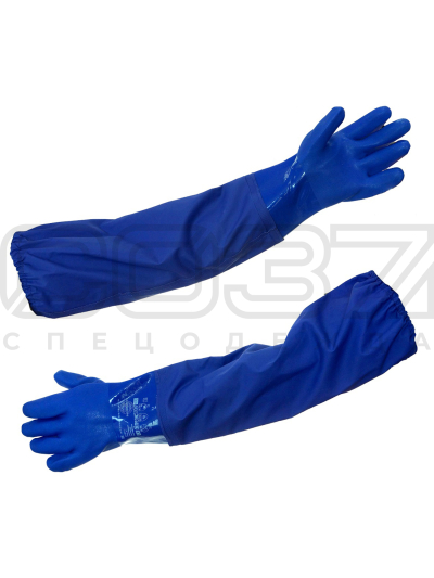 Перчатки ПВХ на трикотажной основе с нарукавником.
