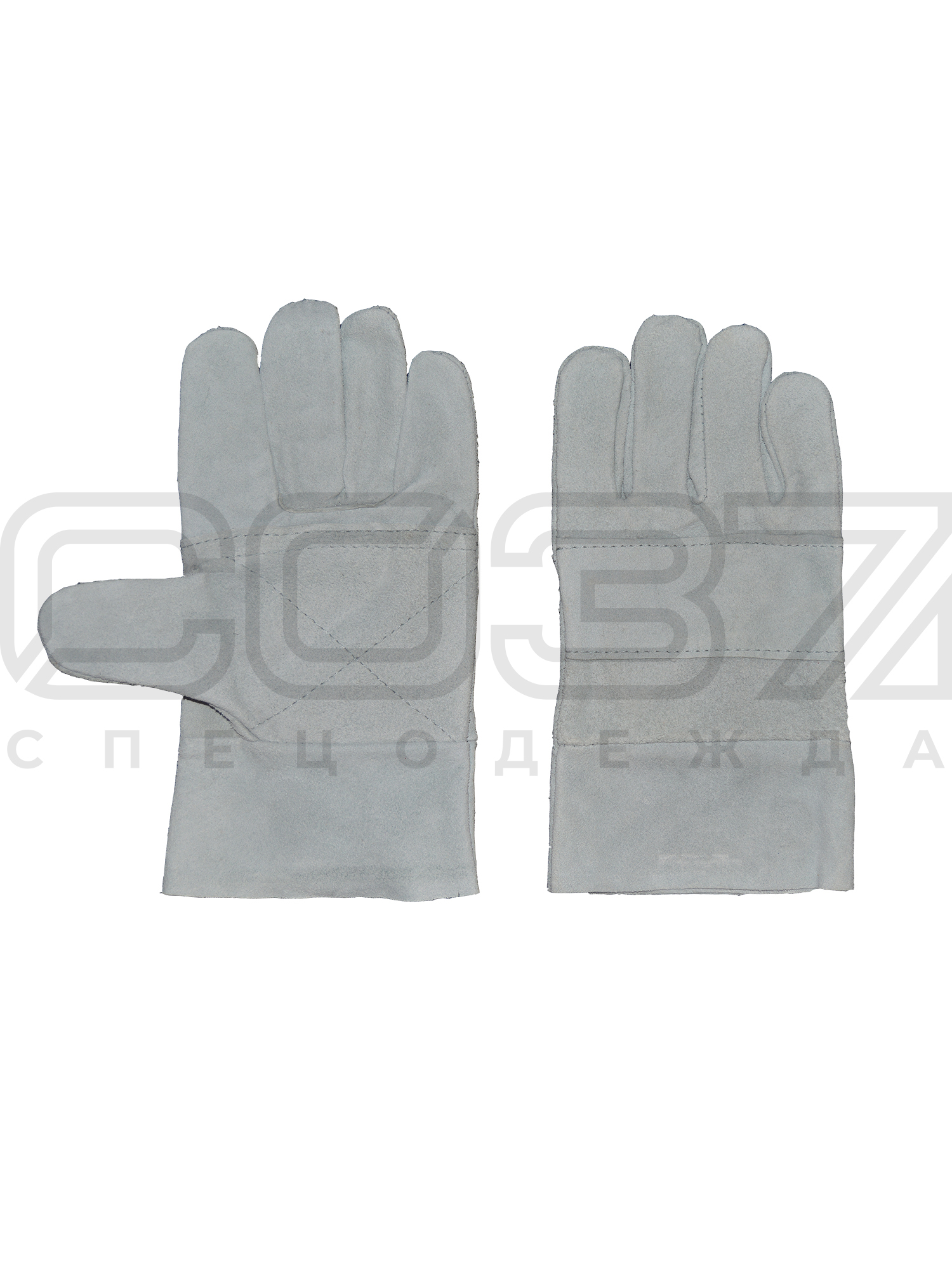 - Перчатки сшиты из высококачественного спилка КРС, равномерно прокрашенного в серый цвет.